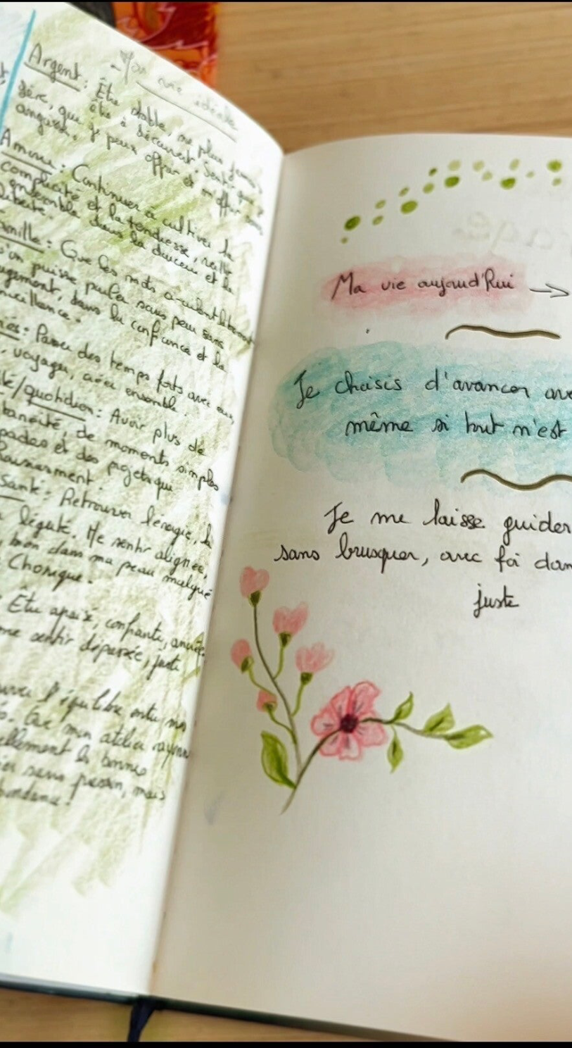 Ma manière d’accompagner ce qui déborde, à travers le collage, l’écriture intuitive et la création libre.